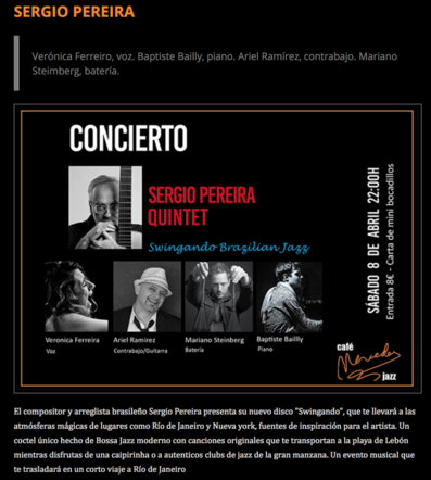 Musicians:Sergio Pereira - acoustic guitarHelio Alves - pianoAriel Ramirez - bassOriente Lopez - flutesMauricio Zottarelli - drumsVanessa Falabella - voice